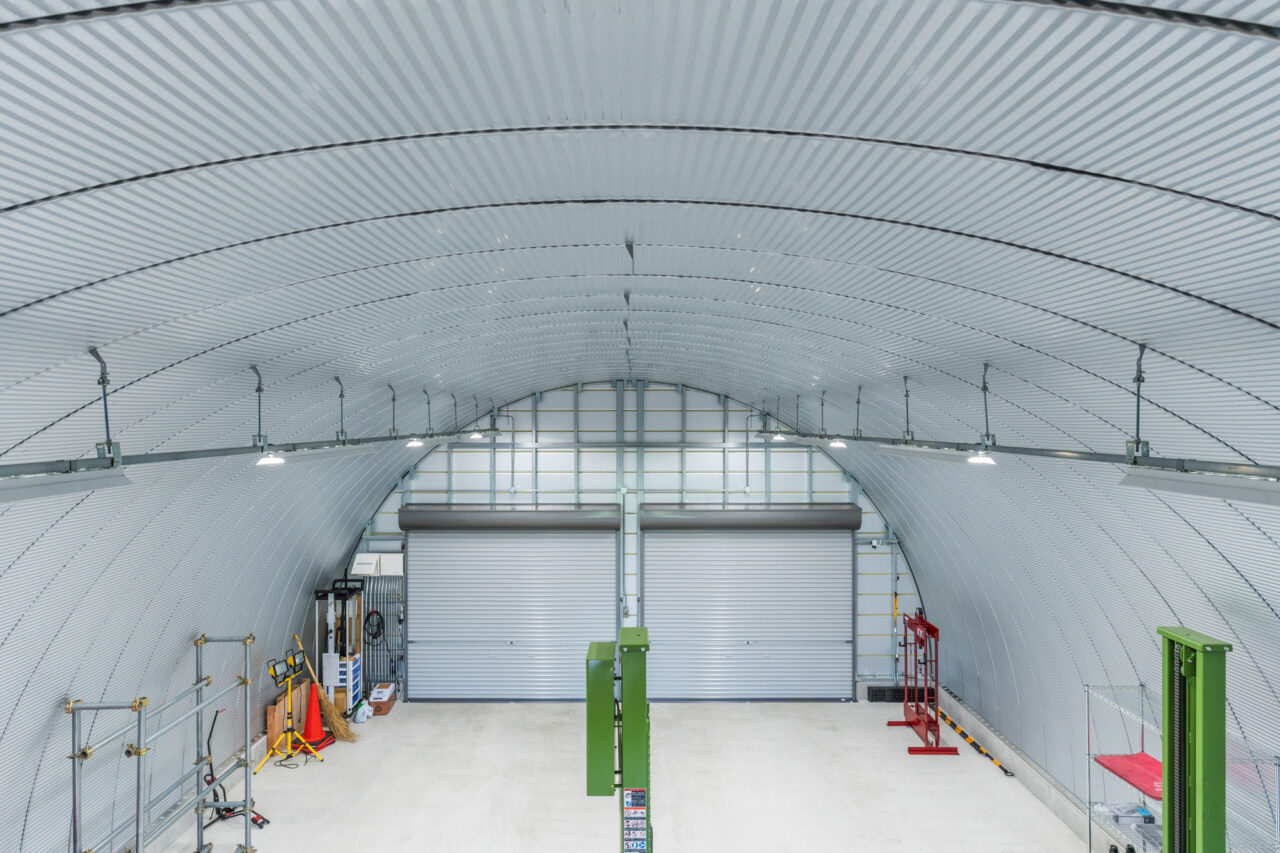【内観】シャッター2箇所 用途にあった設計 間口8.8m スチールアーチ完成!