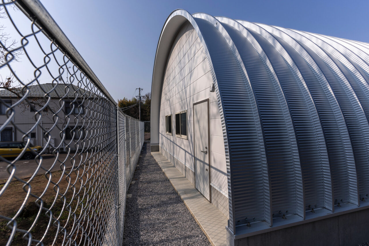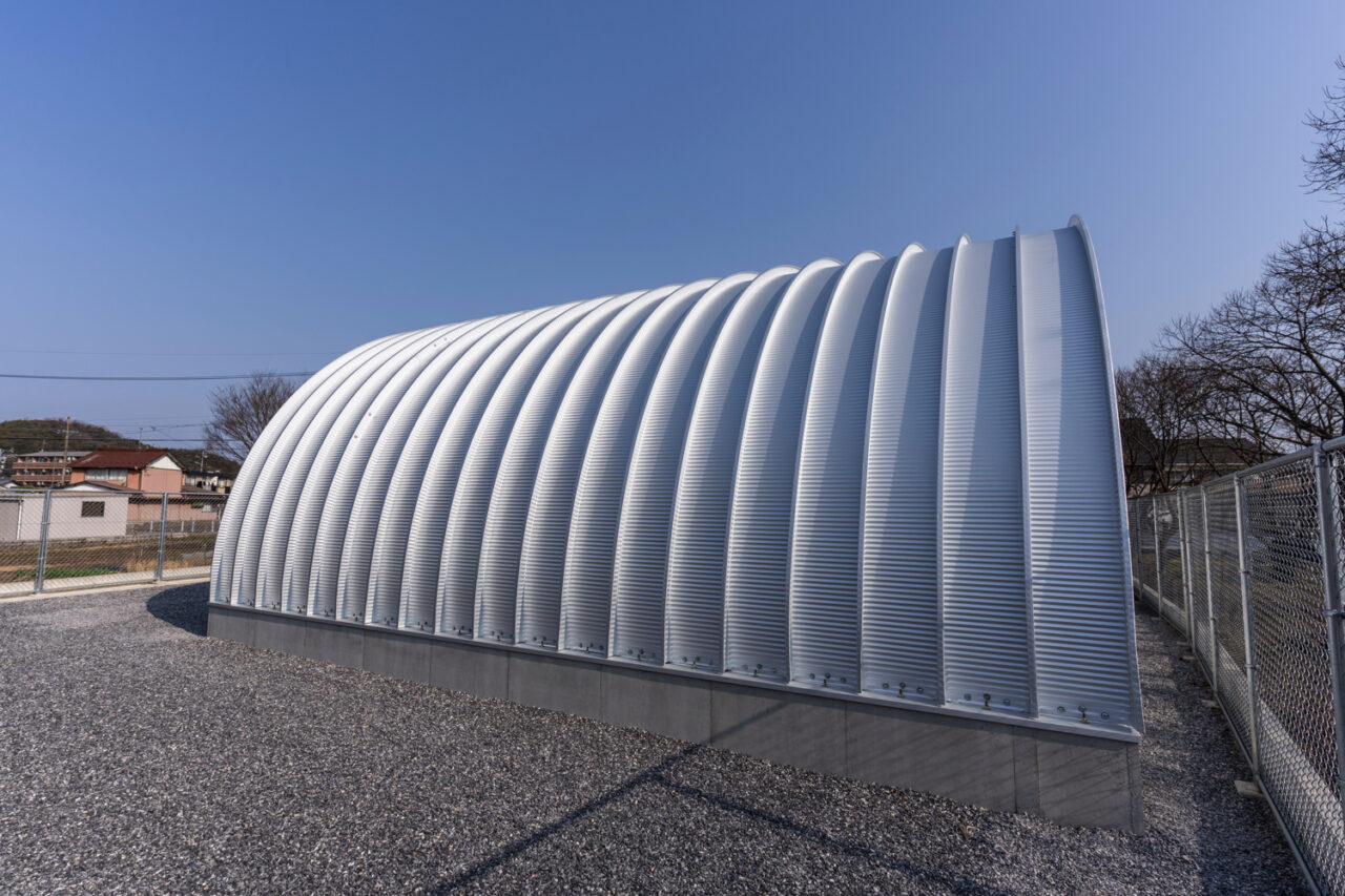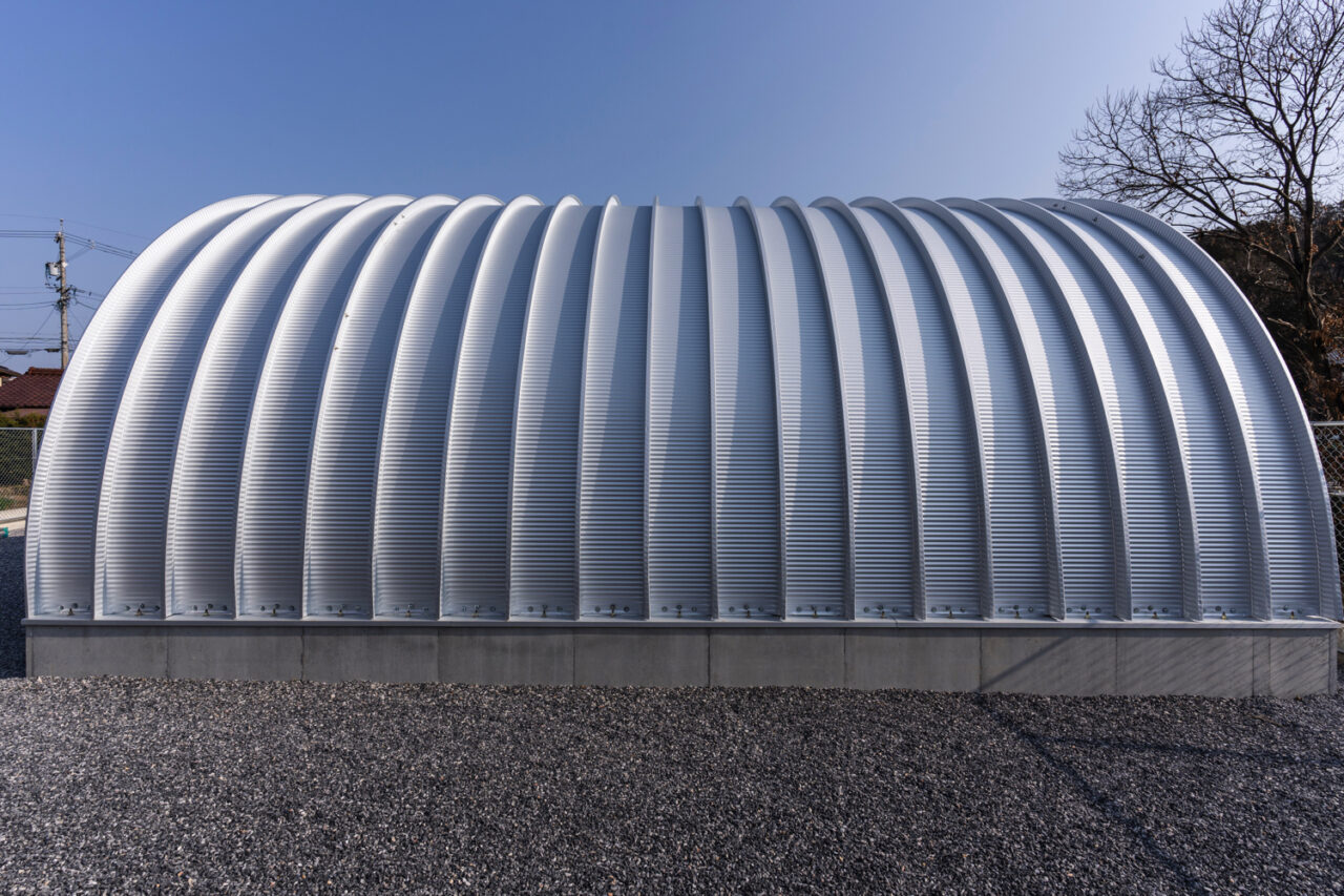間口8000mm 奥行8835mm 高さ4600mm スチールアーチを施工させていただきました。