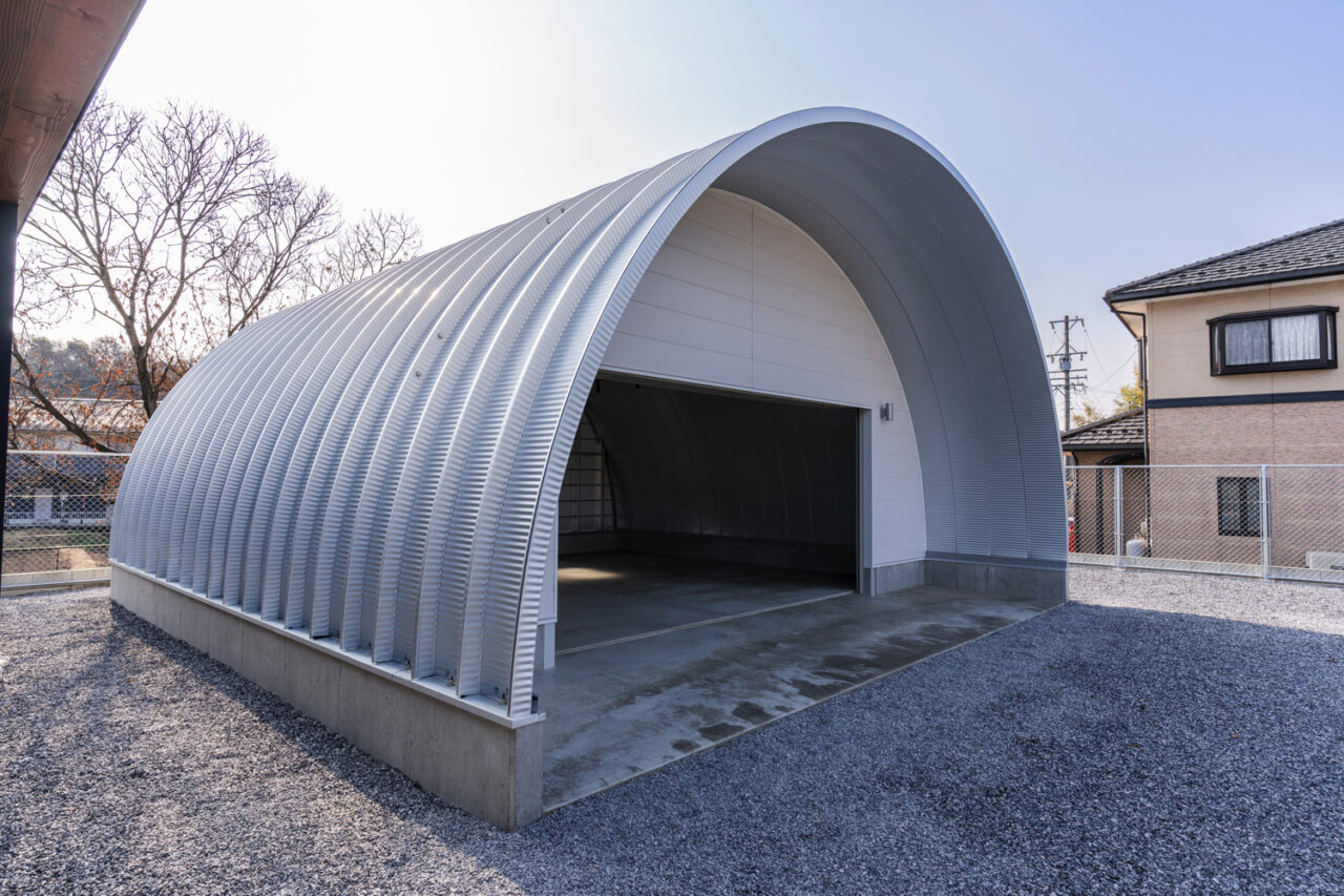 ガレージはもちろん、大型倉庫、整備工場など使い方は様々。柱なしの大空間がつくれます。