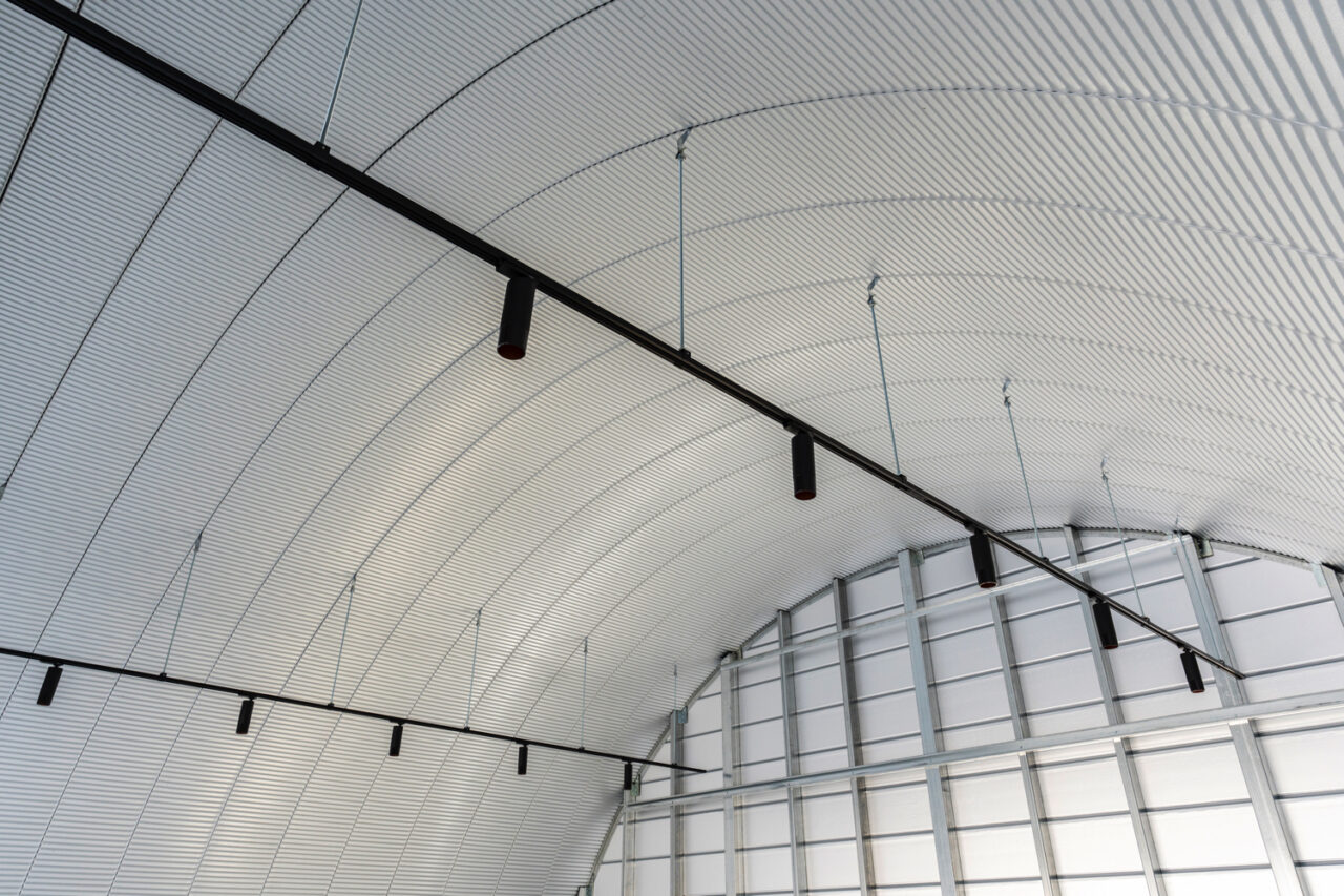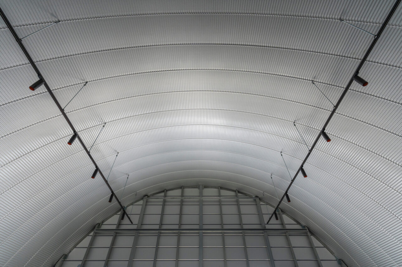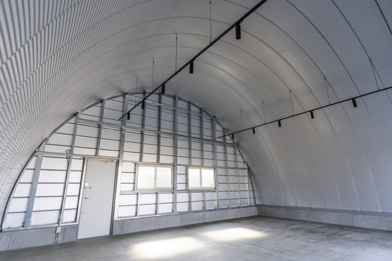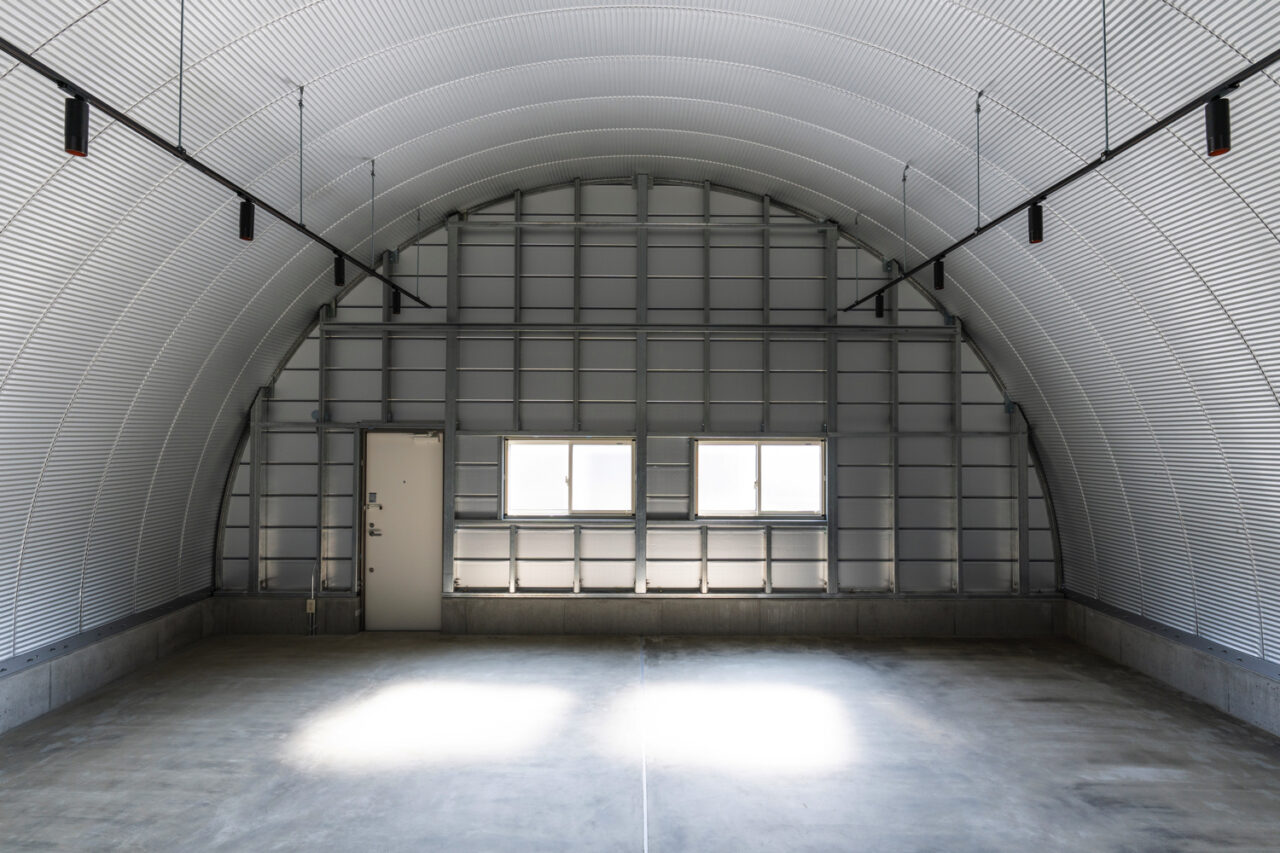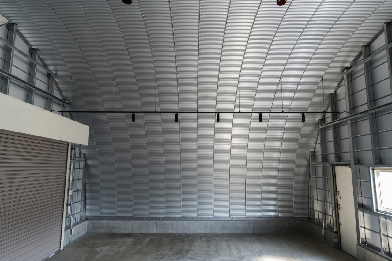 【内観】間口8000mm 奥行8835mm 高さ4600mm スチールアーチが完成しました!