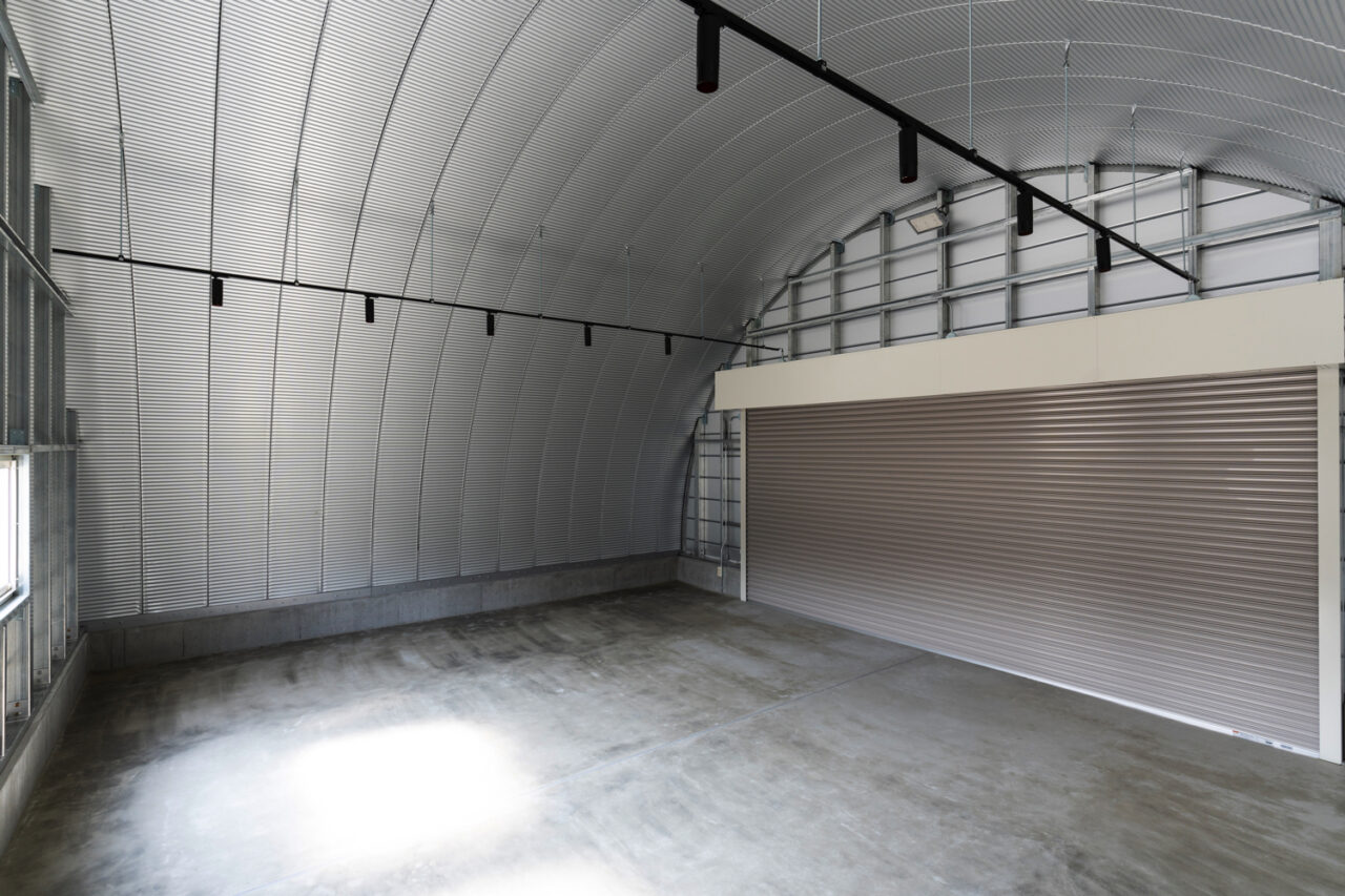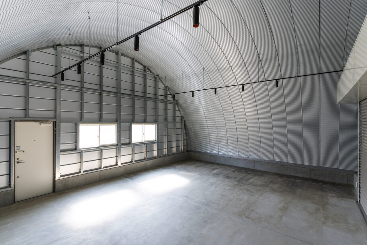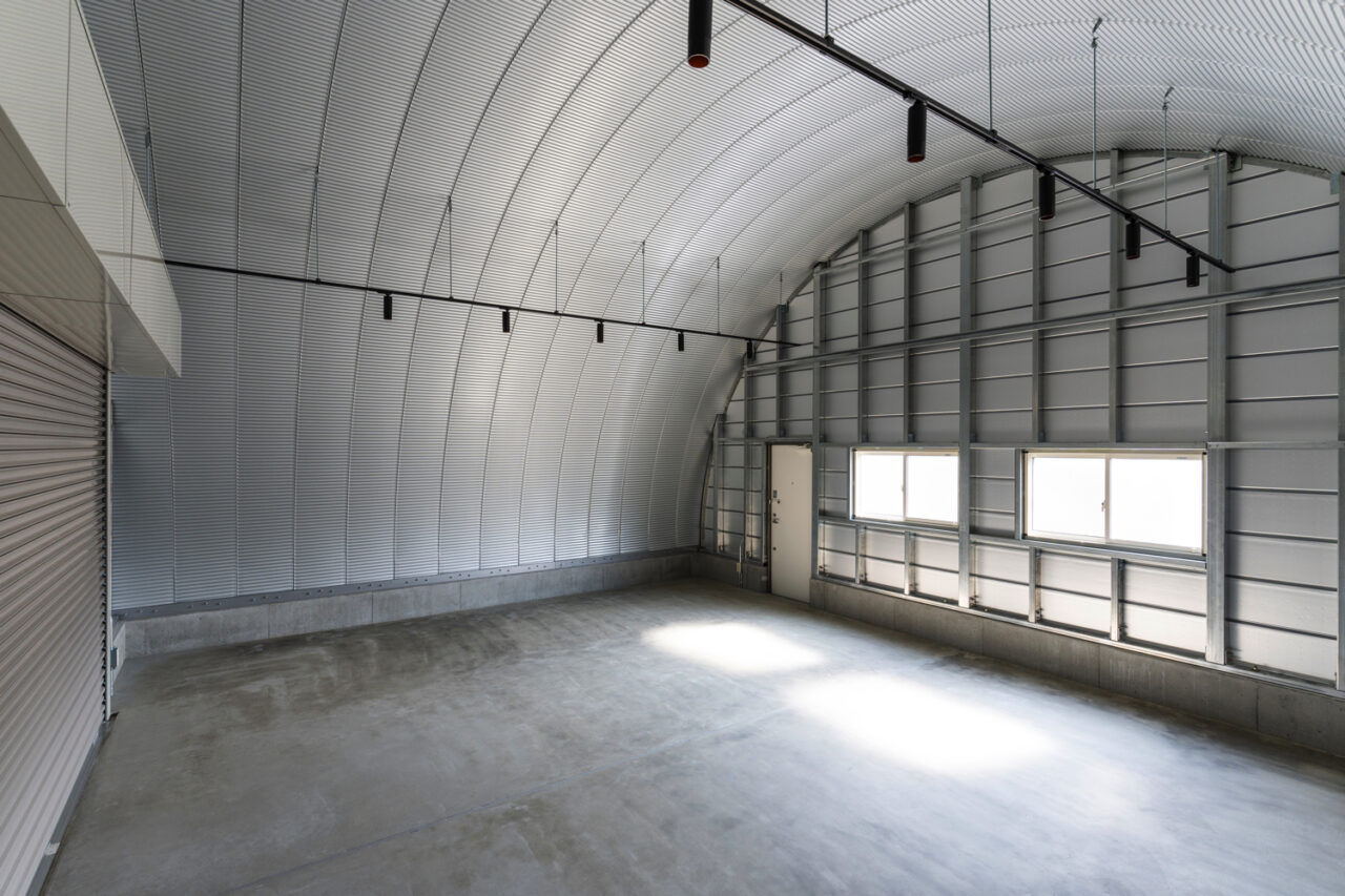 ガレージはもちろん、大型倉庫、整備工場など使い方は様々。柱なしの大空間がつくれます。