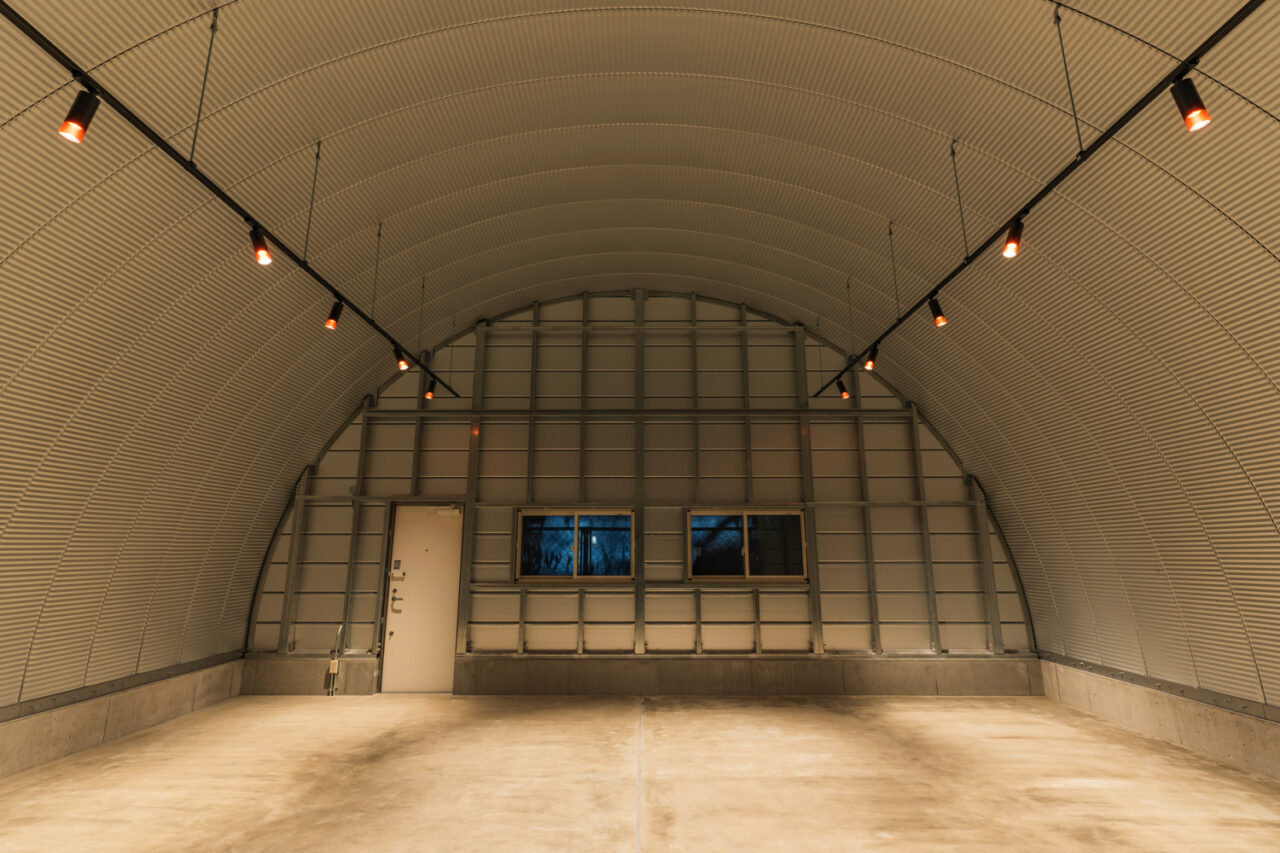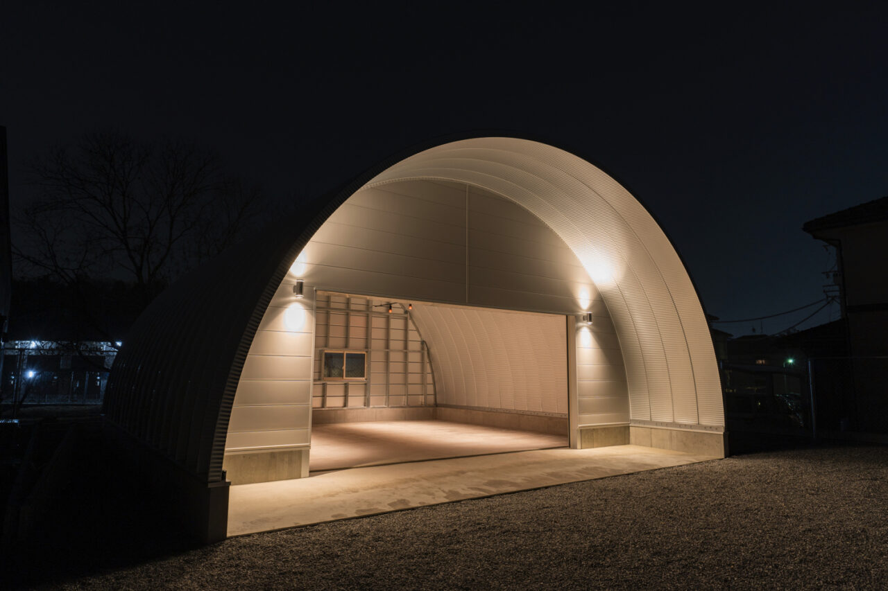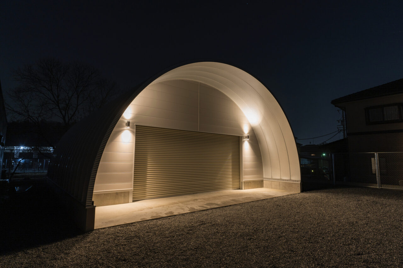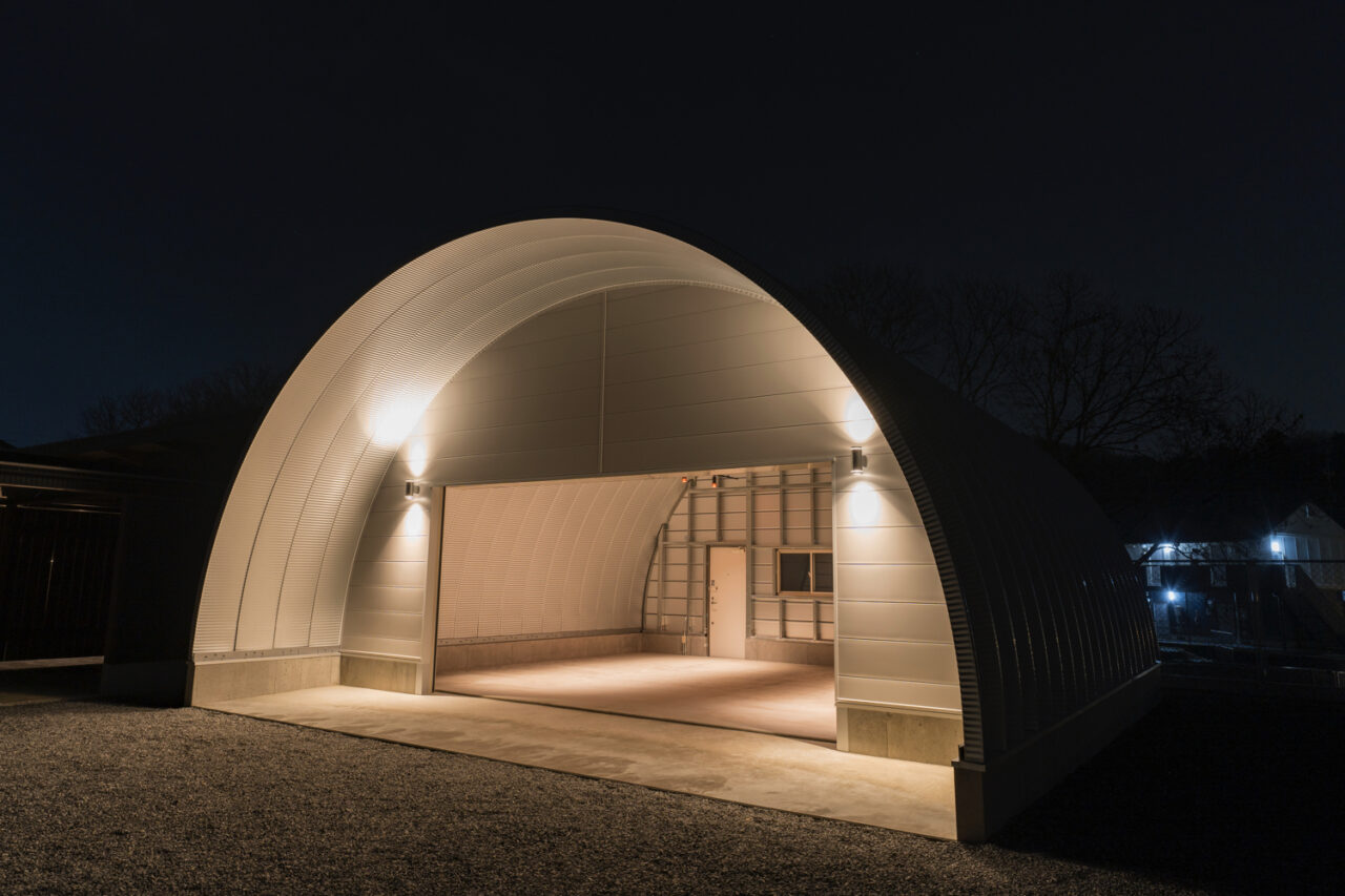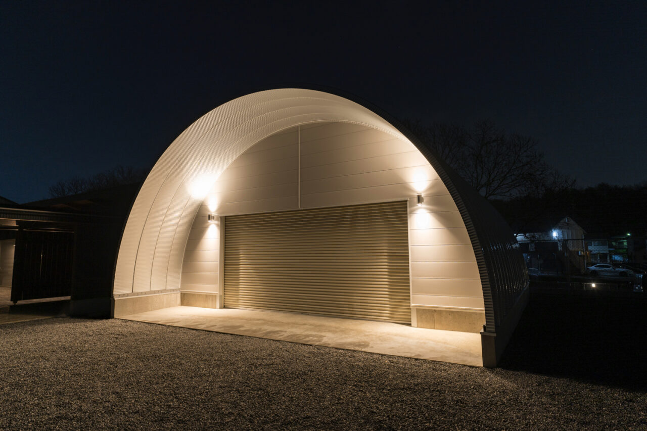 【ライティング】間口8000mm 奥行8835mm 高さ4600mm スチールアーチが完成しました!