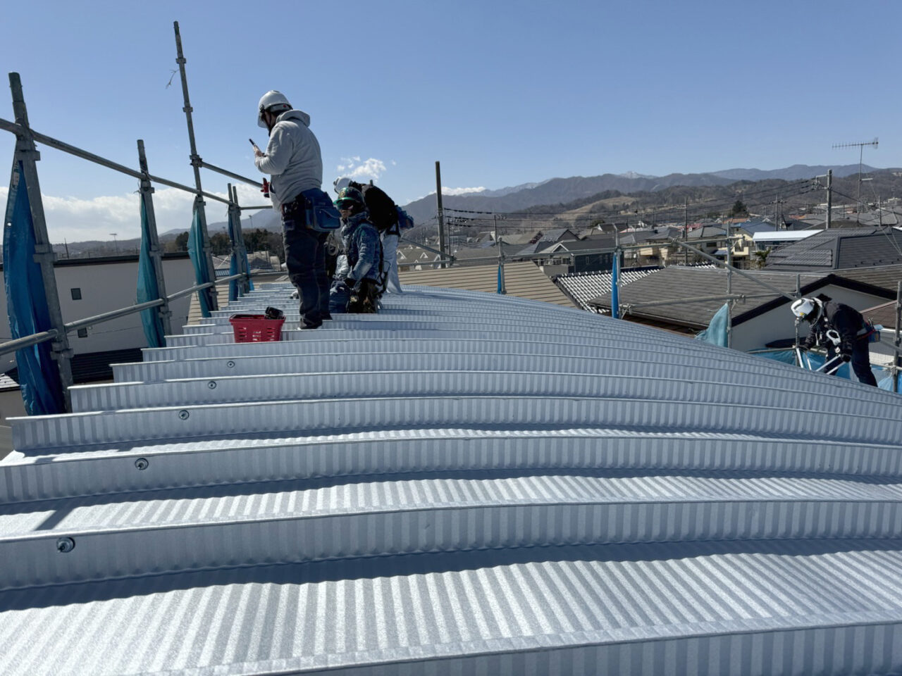 仕上がりはガルバリウム素地となり、シルバーカラーで目を引くカラーデザインが特徴です。