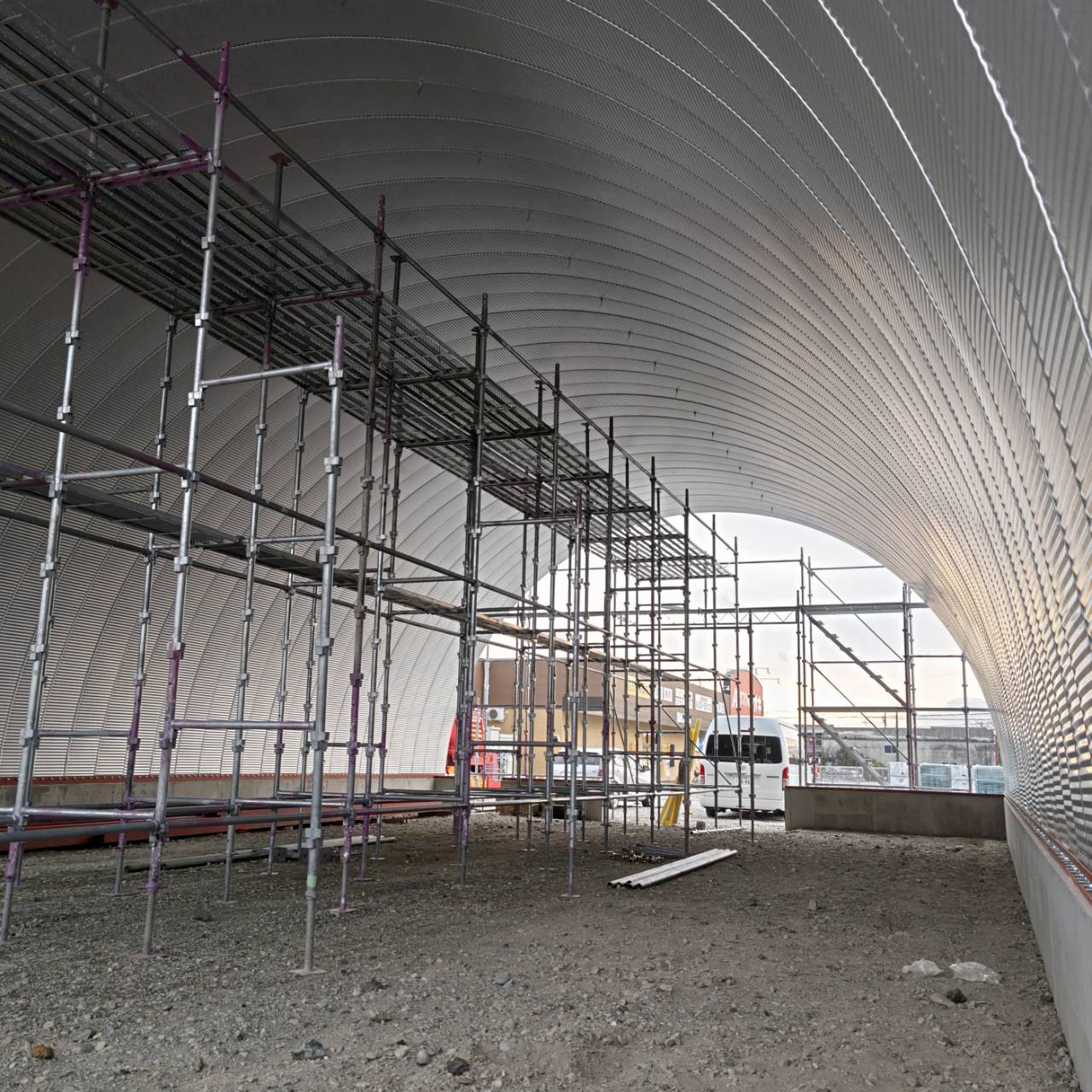 現場一次成型・足場設置・土台アングルも設置が完了し、いよいよ最大サイズ2棟の建て方を施工いたしました!