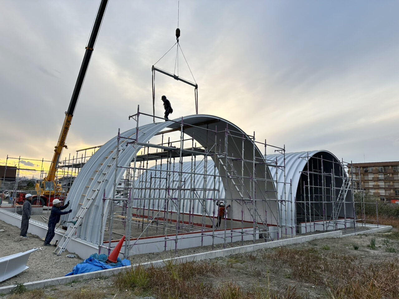 スチールアーチ 間口10m 奥行き19.5m2連棟仕様。