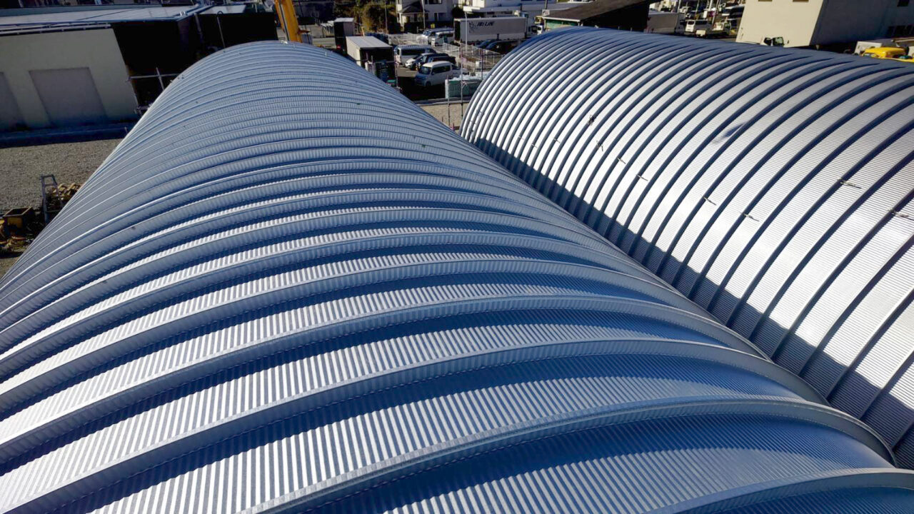 三重県伊勢市 迫力のスチールアーチ2棟 建て方コンプリート!