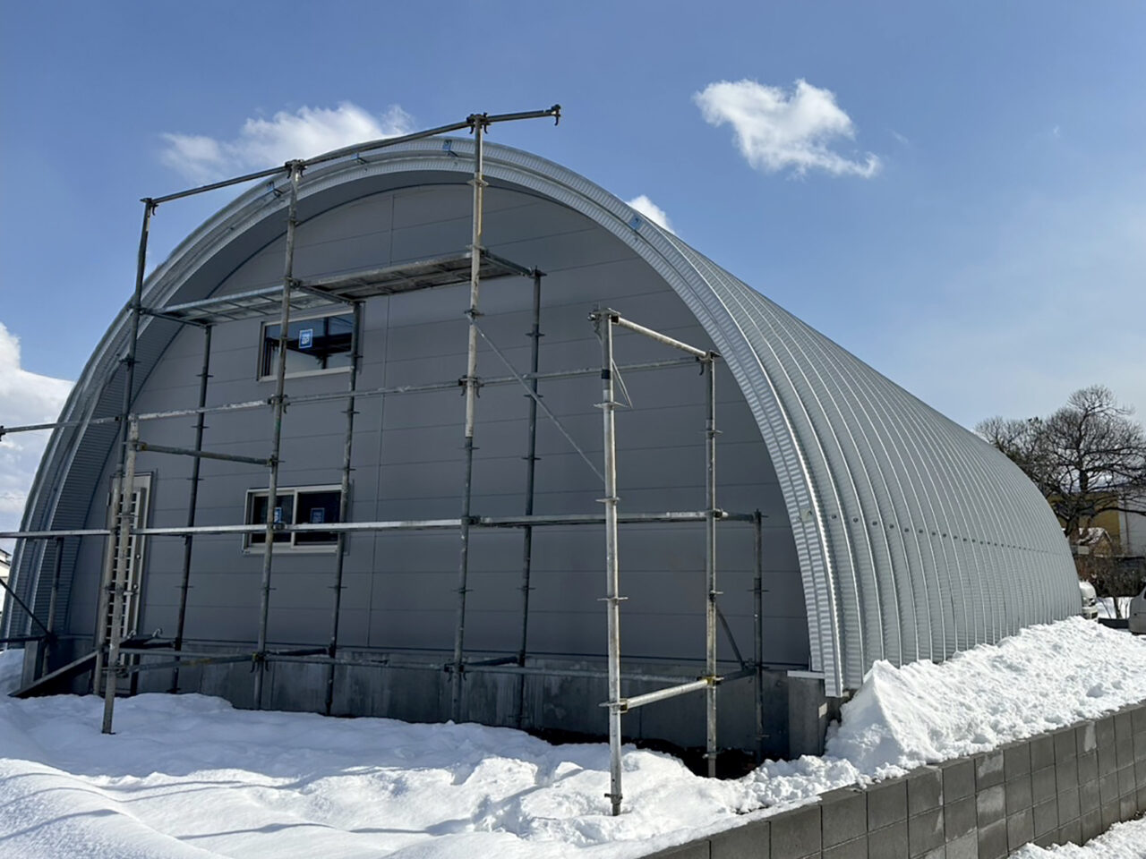 今回のスチールアーチは、「外断熱インシュレーション工法」を採用しており、