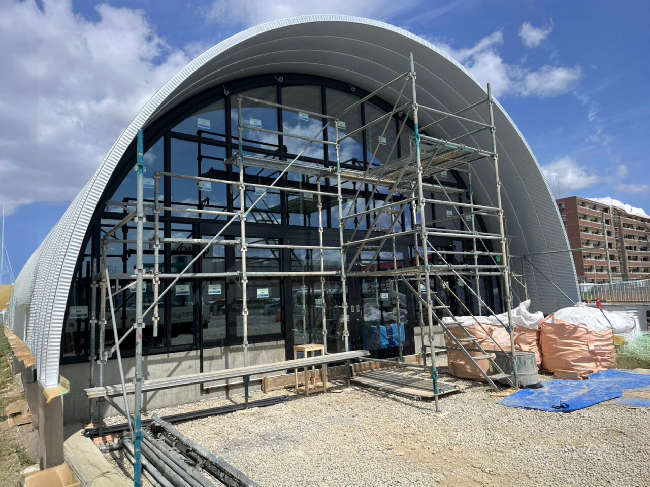 愛知県大府市で施工中のスチールアーチ建築は、完成に向けて順調に進行しています。