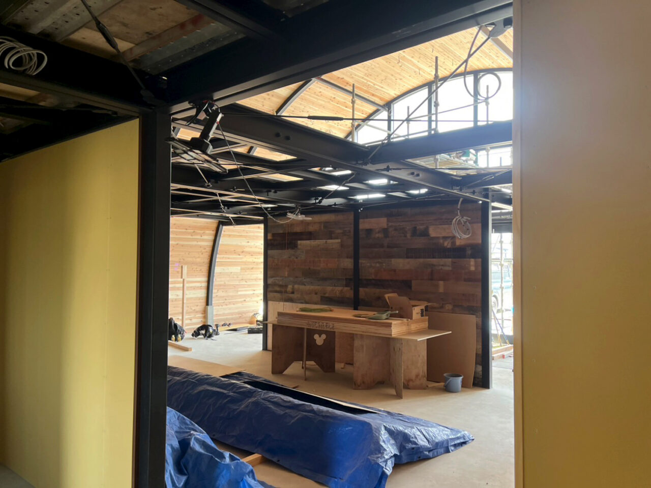 現在、内装工事が進行中で、完成に向けた仕上げ作業が進められています。