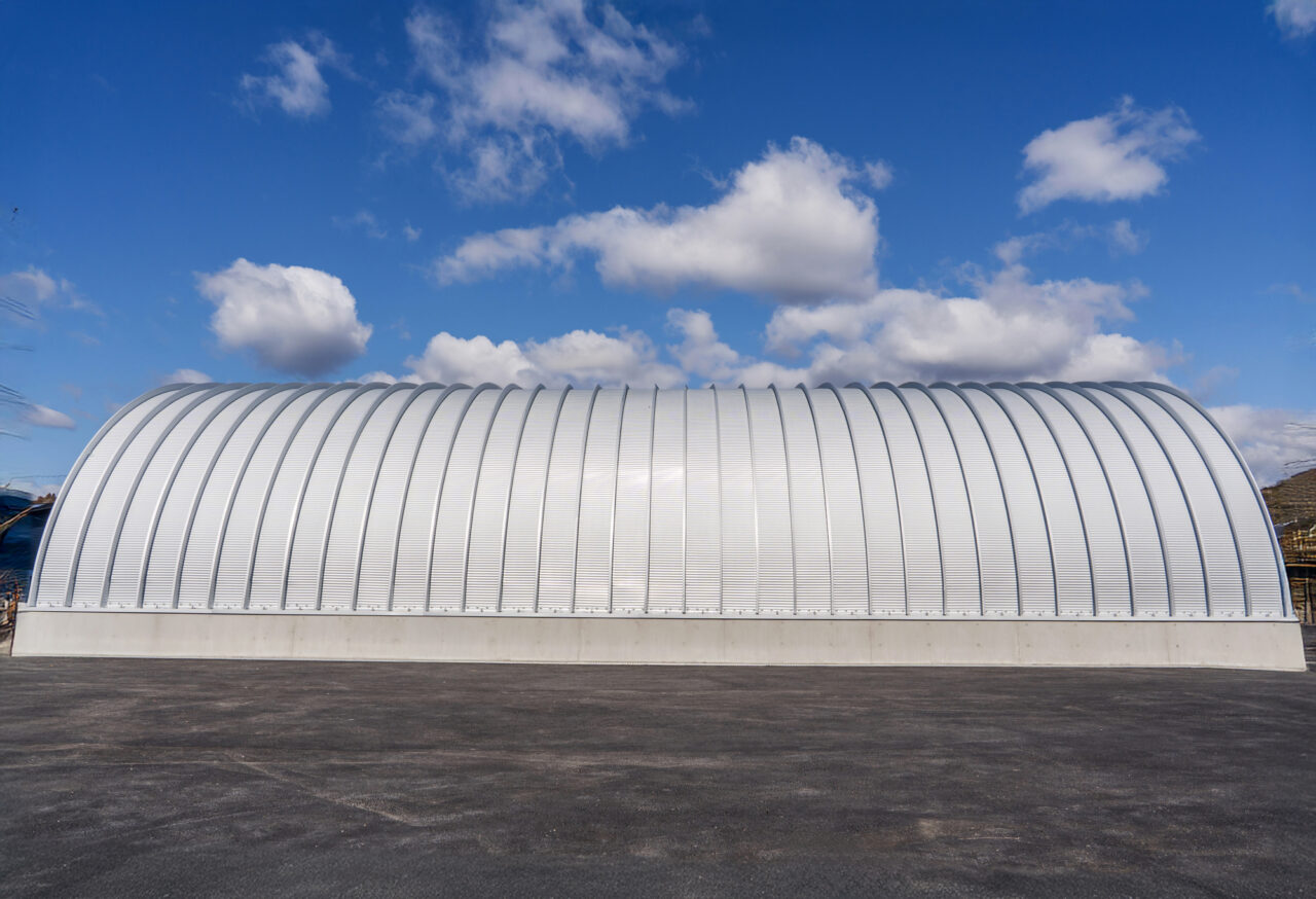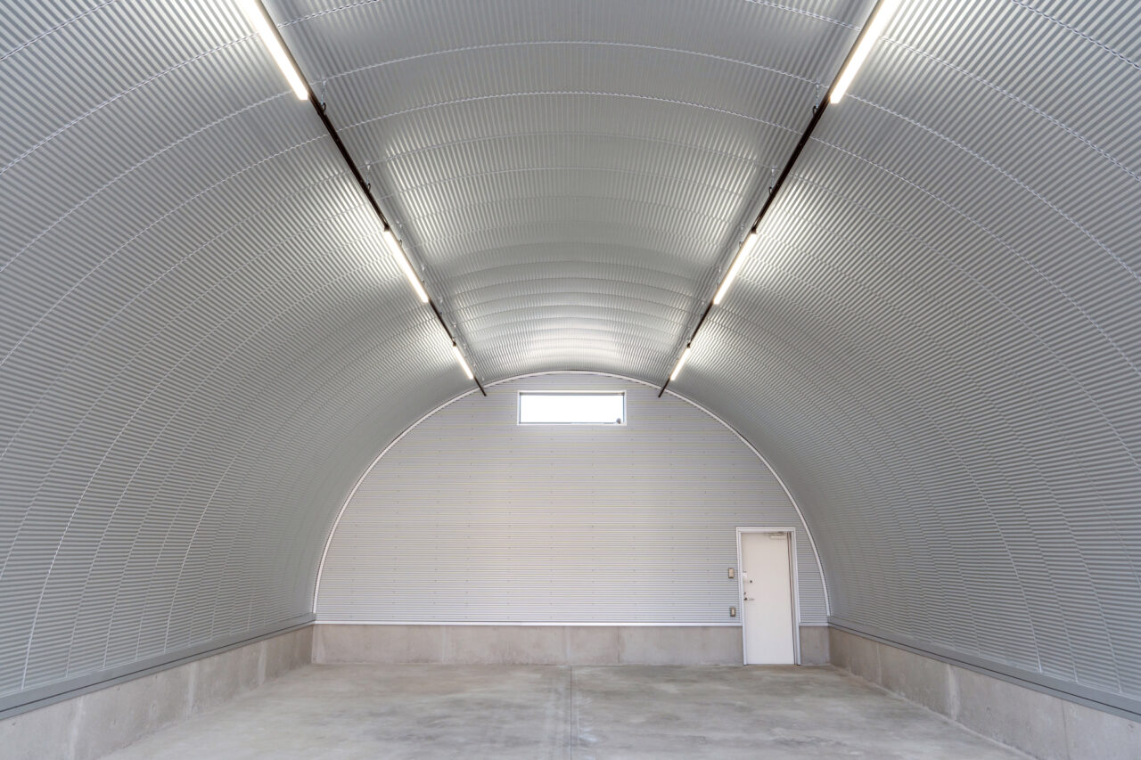 スチールアーチは、強度・耐久性に優れたアーチ型の鉄骨構造を持つ建物です。