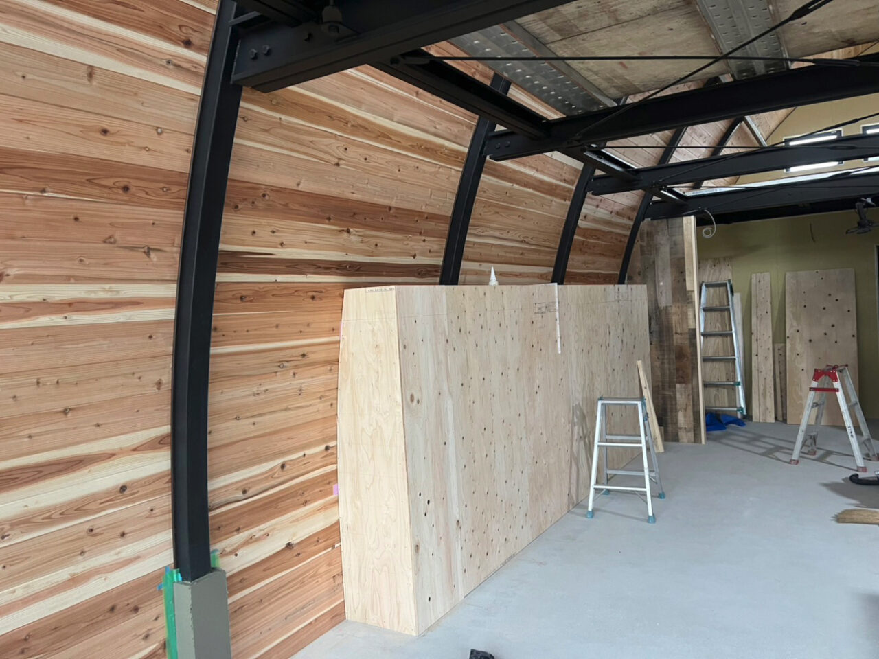 現在、内装工事が進行中で、完成に向けた仕上げ作業が進められています。