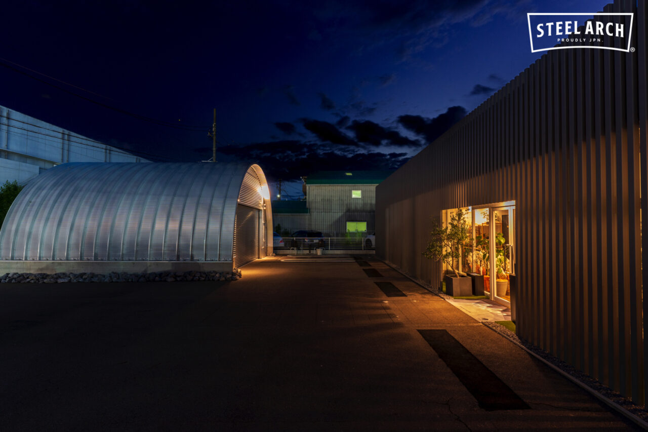 北名古屋市にて間口8000mm 奥行7905mm 高さ4000mm スチールアーチを施工させていただきました。
