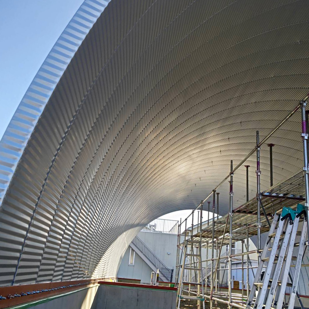 今回のスチールアーチは、36スパン 16.74mの奥行きになります。