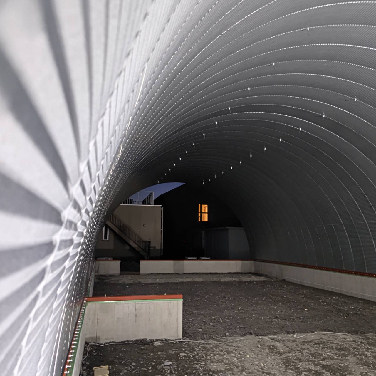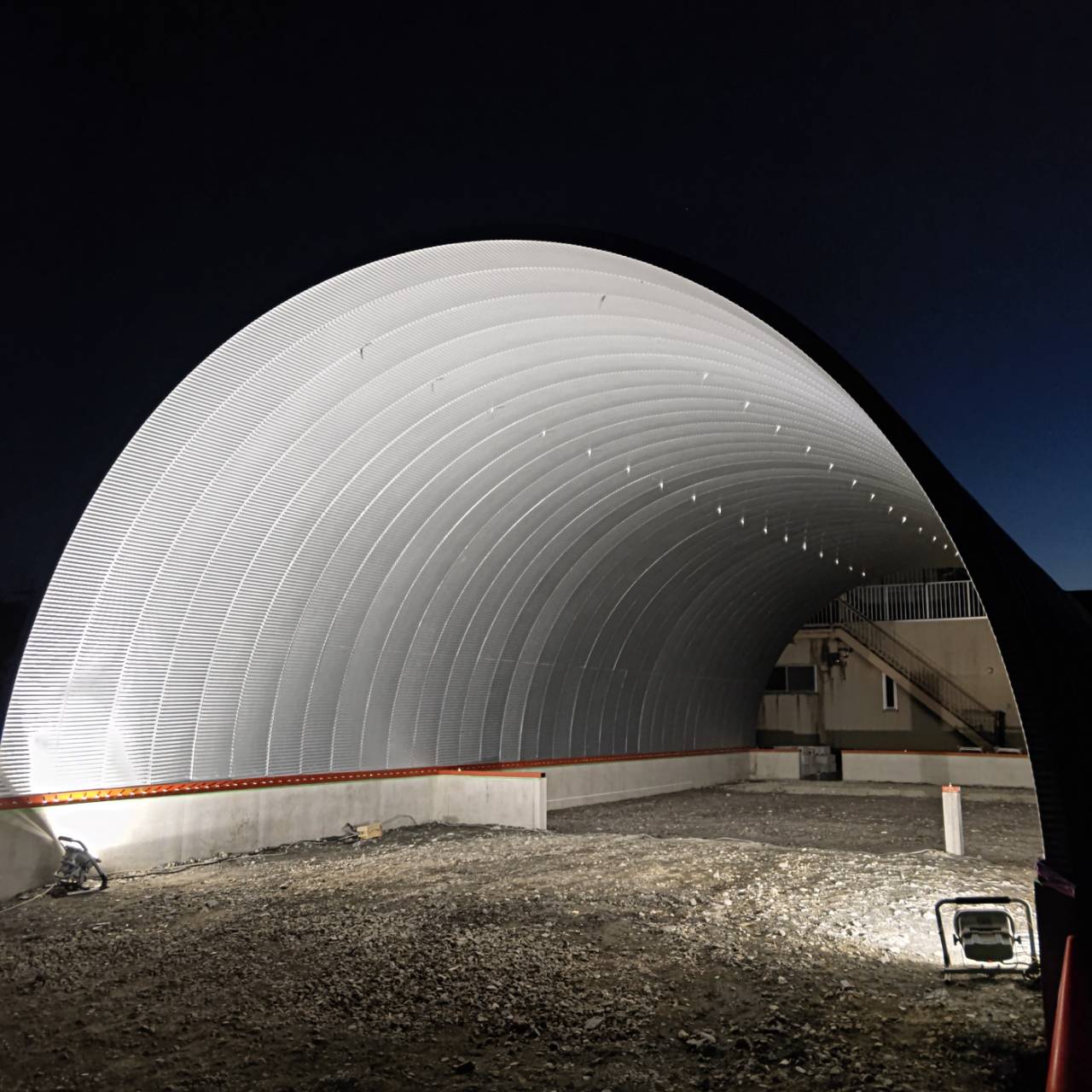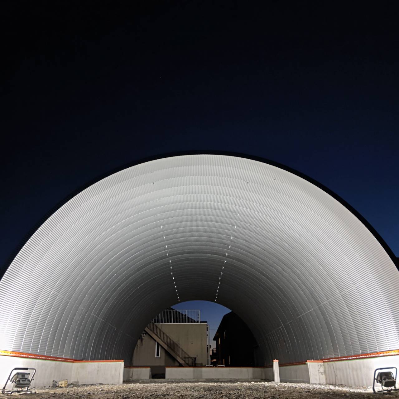 奥行き16.74m 柱なしの大空間スチールアーチ!