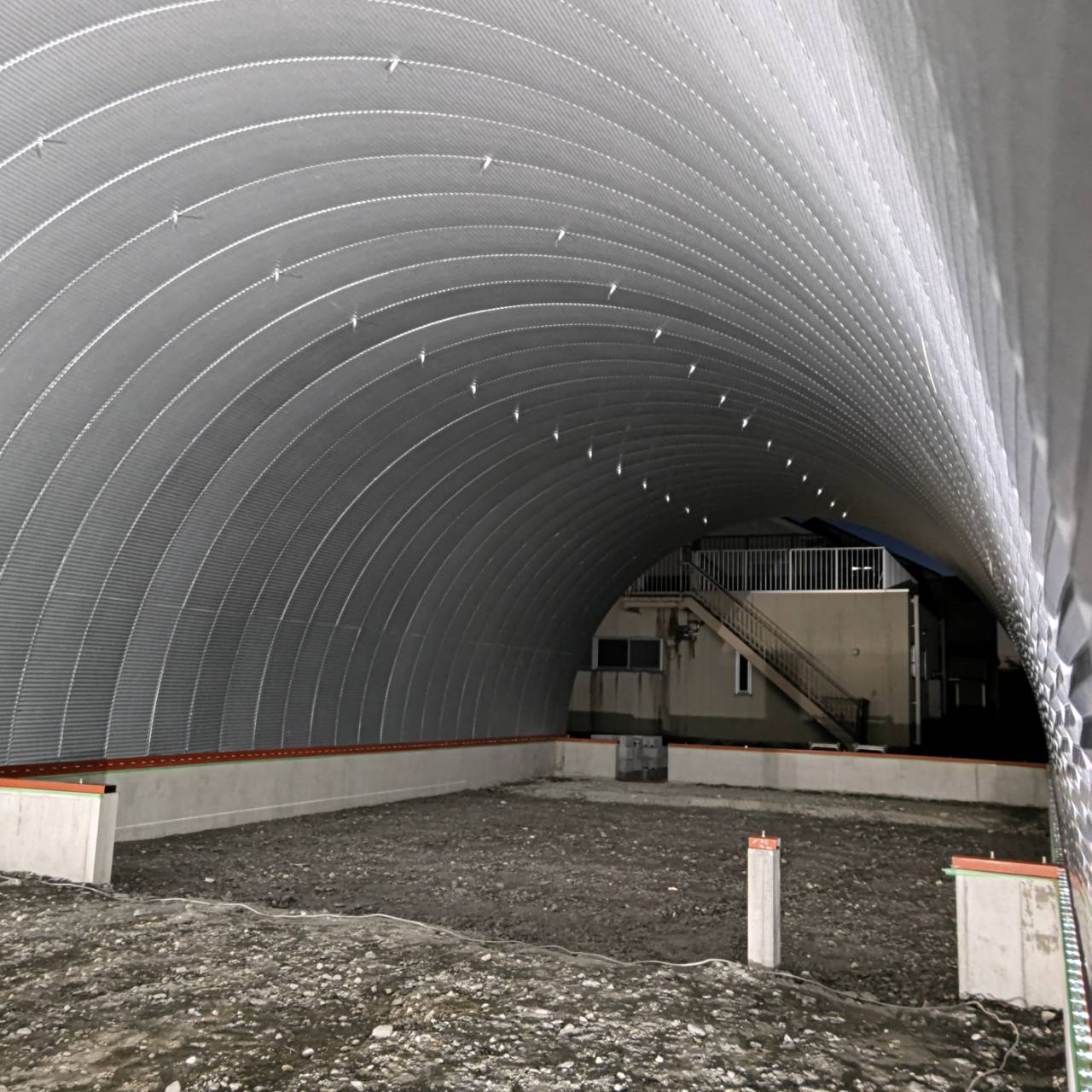 三重県 有限会社 谷口板金工業 スチールアーチ! 奥行き16.74m 柱なしの大空間!!