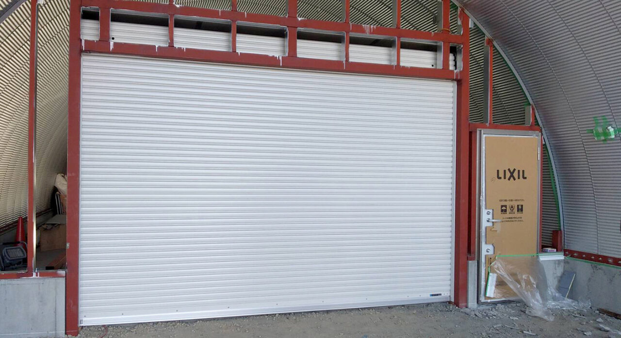 奥の妻面外壁、正面のシャッターも取り付け完了しました!